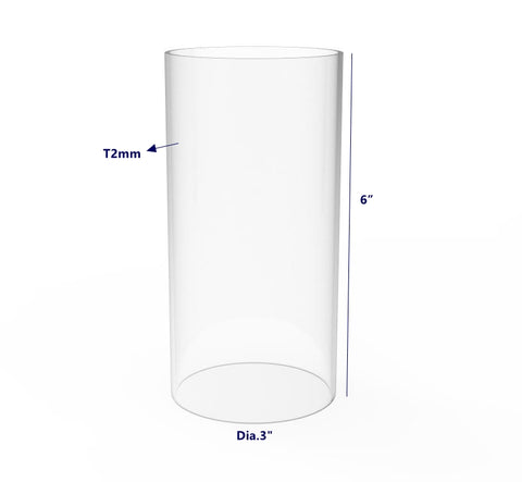 FixtureDisplays Clear Transparent Plexiglass Acrylic Tube 3 (76mm) diameter x 6 (152mm) long, 5/64 (2mm) Wall Thickness. Made from high quality acrylic. Great clarity.