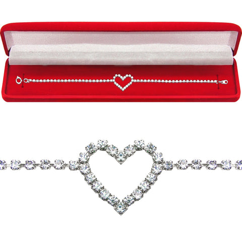 Forever Silver Plated Woman's 7 3/4 Crystal Heart Tennis Bracelet ** Made With 72 2mm Sparkling Swarovski Crystals & Our Exclusive No Tarnish Silver Plating * Available with or Without a Plush Velour Gift Box * Great for Valentine's Day, Birthdays, Christmas Holidays, etc..