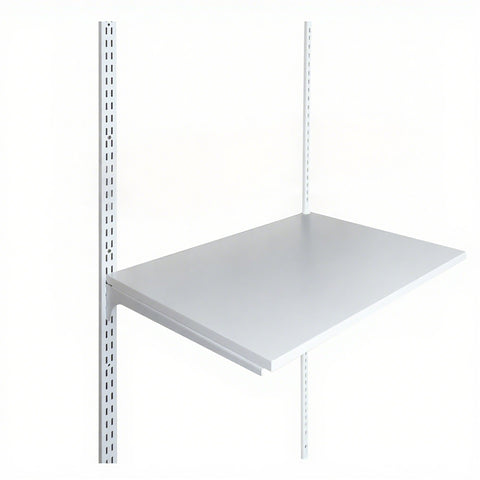 【White Melamine MDF Shelf】Designed for use with slot shelf brackets and slot tracks. This sturdy 0.75" thick shelf is ideal for retail displays, garage storage, utility rooms, closets, and home organization. Its smooth white melamine finish provides a clean, modern look while being easy to wipe and maintain