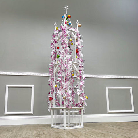 【Made of Metal】This steeple stand is made of 1 inch square tubes and 11GA (2.8mm) steel wires, with a powder coated white finish