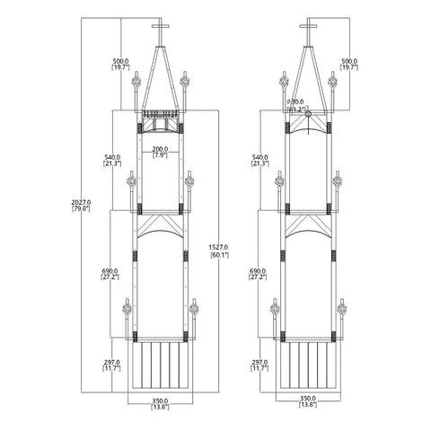 【Overall Size 13.8 X 13.8 X 80" 】The entire structure measures 13.8 inches wide, 13.8 inches deep, and 80 inches tall. It consists of a base, two towers, and a top dome. The base is 11.2 inches tall, the lower tower is 27 inches tall, the top tower is 21 inches tall, and the dome is 20 inches tall, featuring a four sided metal cross on top