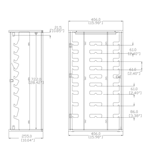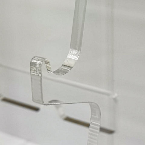 【Overall Size 16 X 10 X 33.5", 18 Pairs】This countertop glasses display has overall dimensions of 16 inches wide, 10 inches deep, and 33.5 inches tall. It features 18 slots, each designed to hold a pair of glasses. The two lower-tier slots are spaced 3.4 inches apart, providing 2.5 inches of clearance, making them suitable for glasses with higher bridges, such as protective eyewear or specialty sunglasses. The remaining slots are spaced 2.4 inches apart, and when locked, offer 1.6 inches of clearance for standard glasses and sunglasses. The top logo panel is 16 inches wide and 4.5 inches tall