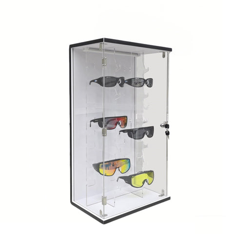 【Acrylic Locker Eyewear Displays with LED Lights】This acrylic/wood/MDF locker glasses display, made of durable and transparent acrylic, feature a compartmentalized design for organized eyewear storage. Their transparency offers excellent visibility. With integrated LED lights, they enhance visual appeal, create a pleasant ambiance, and can be customized in lighting intensity and color temperature, making them an ideal choice for showcasing eyewear stylishly and effectively. The shipping box dimensions are 33.3 inches in width, 18.7 inches in depth, and 3.3 inches in height, with a gross weight of 26.4 pounds