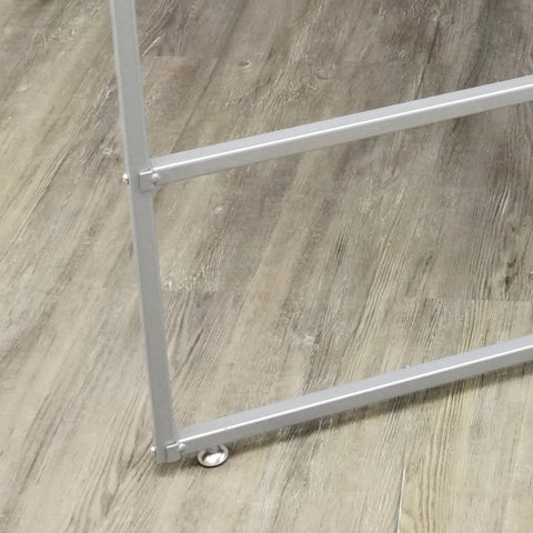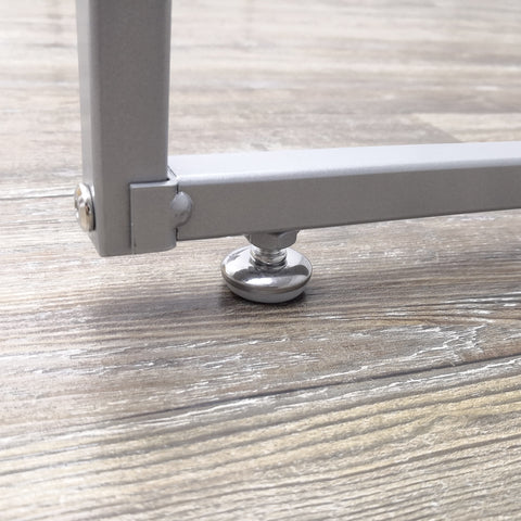 【Durable Constructions】Made with steel frame for lasting use. The steel frames have a silver powder coated finish for a sleek look. Tabletop is made of 0.7" MDF, they can support a generous amount of merchandise on the tabletops. Features four feet for adjusting the fixture and stabilizing on most surfaces