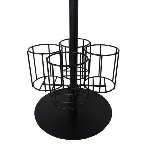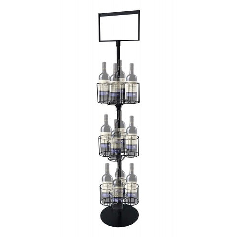 Specifications: This beverage rack is a perfect fit for restaurants, stores, or even your home. Capable of holding 12 bottles, it is very space effective. It has a elegant rotary design, which is sure to look great in any setting. There is a built in sign hodler which allows you to advertise or label the rack.