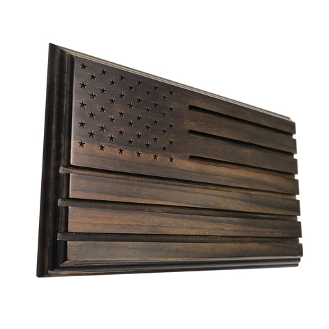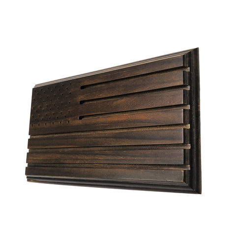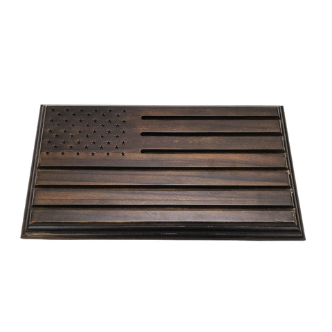 Hand crafted Row Challenge Coin Display with engraved stars has an appearance of a flag and is super eye-catching.