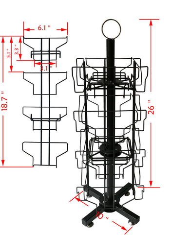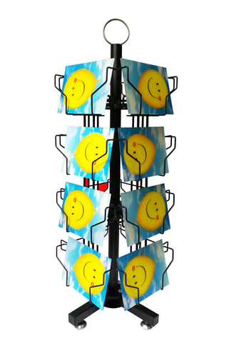 This postcard display is a 16 pockets greeting card holder. The stand displays your 6 x 4 cards in horizontal (landscape) view. Designed for countertop use, customers can rotate the greeting card carousel to see all four sides of the display holder. Allow the rack to spin on the sturdy metal base while patrons stand in place.
