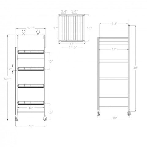 * Shelves Dimension: 14.5" width x 2.3" height x 17.8" depth (Each shelf has 13 rows, row's inner width is 1.25" );
