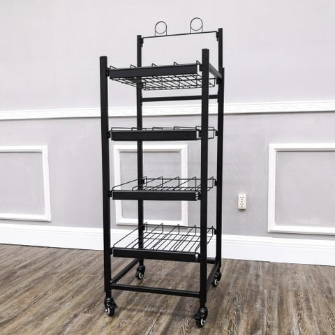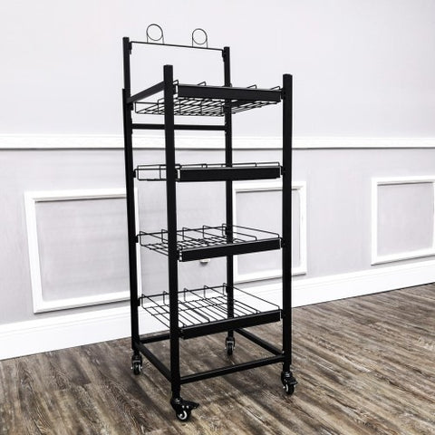 FixtureDisplays® 18"w Beverage, Bottled Water, Cocktail, Beer Display Rack w/ Wheels, 4 Shelves & Sign Clip - Black 16770