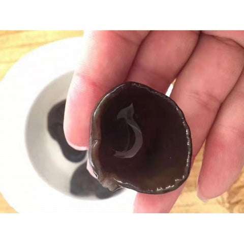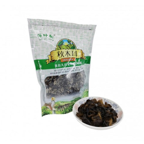 * 9 Oz (250 grams) Black Fungus Woodear Mushrooms (Auricularia Polytricha). Professionally dried. Re-hydration up to 10 times size after proper reconstitution. So try small amount if you are new with Woodear Mushrooms. Grown in Far North China - Da Xingan Ling Mountain. This slow growth Black Fungus Woodear Mushrooms is top notch quality. Super clean.