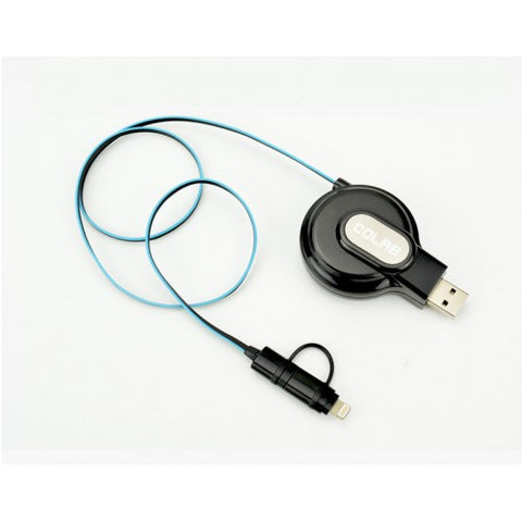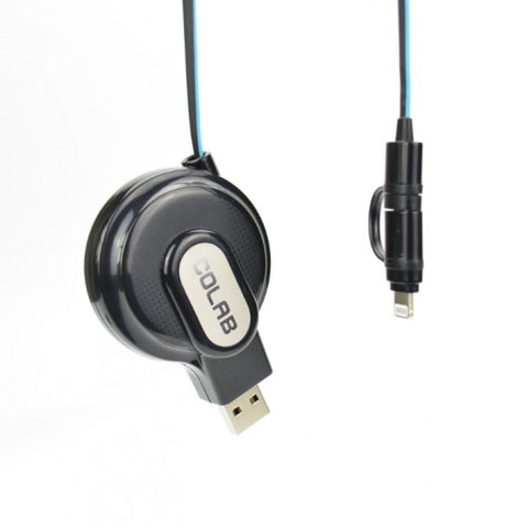 FixtureDisplays Duo (2.6ft/0.8m) Retractable Flat Charge and Sync 2-in-1 Cable with Lightning & microUSB connectors for IOS/Android.
