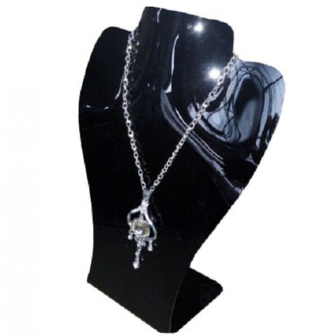 This neck form is an ideal piece to display your necklaces, pendents. Measures 7.5 wide, 3.5 deep, 11.5 tall. Made from medium high quality black acrylic, simple and durable!