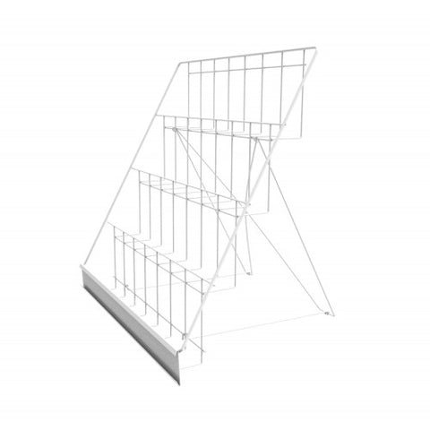 This countertop literature rack, wire holder is durable and convenient. This countertop sign holder has 4 open shelves, each 2.5 deep, great aid for displaying magazines, brochures, maps, small books and more. Keep your promotional materials and brochures organized and highly visible.