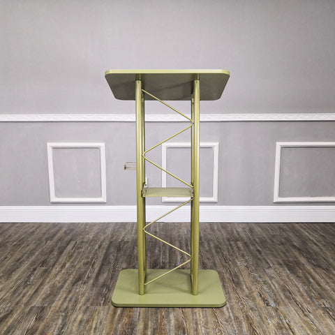 FixtureDisplays@I Light Green Hue Gol Id Color Curved Podiun, Truss Metal/ Wood Pulpit Lectern with a Saucer 11568-GOLD
