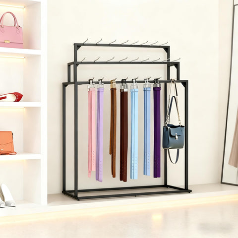 ¡¾Belt Display Rack¡¿This display rack designed to showcase belts on both sides, maximizing display capacity while saving space. Its sturdy construction ensures stability, and the open design allows customers to easily view and select items. Ideal for retail stores, fashion boutiques, department stores, and trade shows. Shipping box measures: 44.7W ¡Á 17.1H ¡Á 2D, with a gross weight of 27.8 pounds