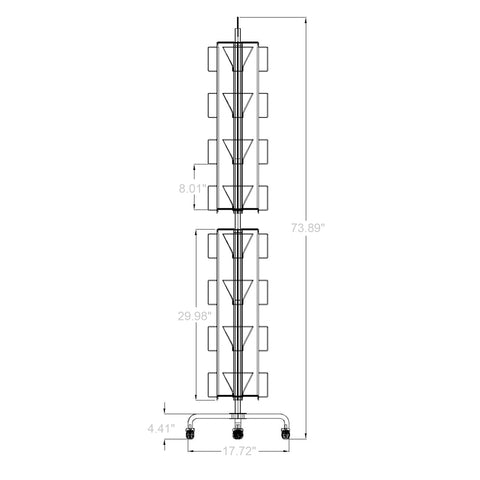 This rack spins on the sturdy metal base while patrons stand in place. Easy to move around with four castors (two are locking castors).