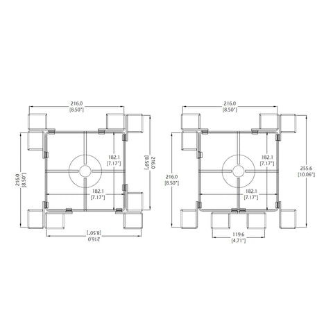 Base: 17.7 width x 2.5 height x 17.7 depth.