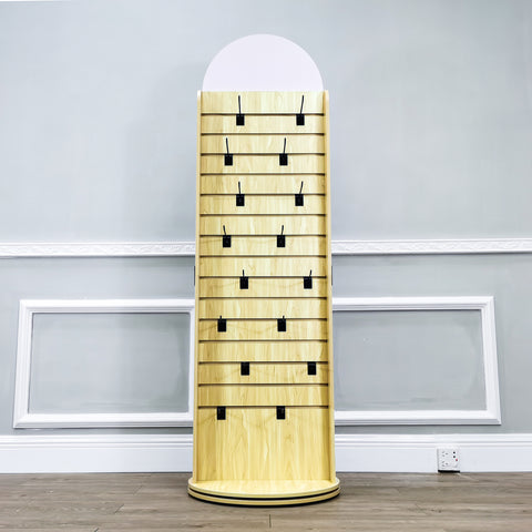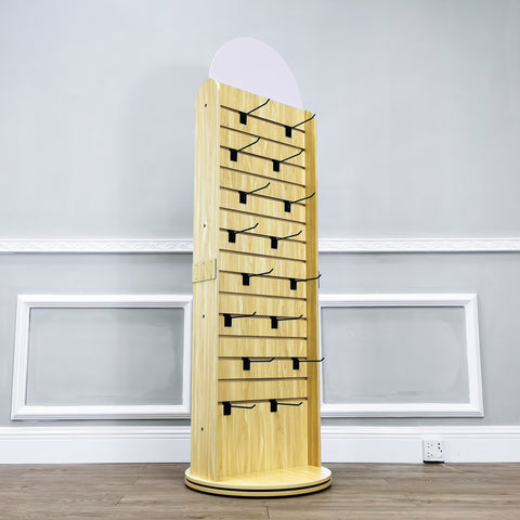 Double Sided Slatwall Rotating Display Wood Floor Standing Rack New Model