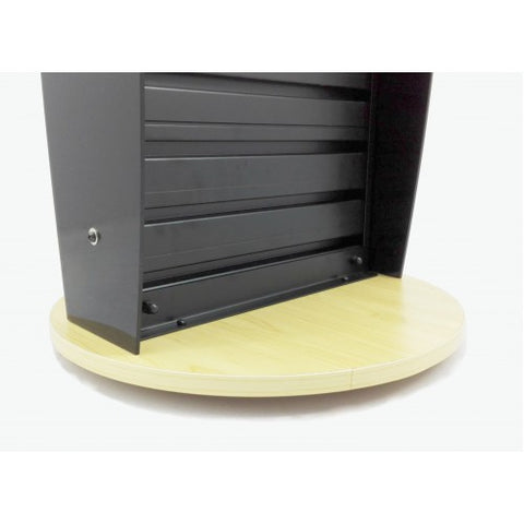 Fixture Displays Black Slatwall Display Countertop Spinner Rack POP POS Retail Stand. This countertop display is well crafted with extruded aluminum slatwalls, 1/8 black acrylic side panels. Spinns freely to allow your customers view products on both sides of the display.
