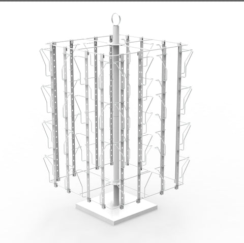 Up to 8.5"W Adjustable 32-Pocket Greeting Rack Spinning Rack Pocket 4.5-9"X5.8"T 11602-L-DOUBLE WHITE & SILVER POCKET