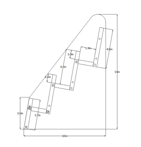 Shelves slant backward approx. 5 degrees for ease of viewing. Product weight is 14 lbs.