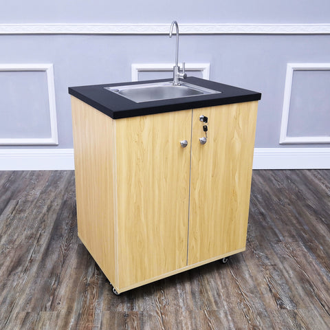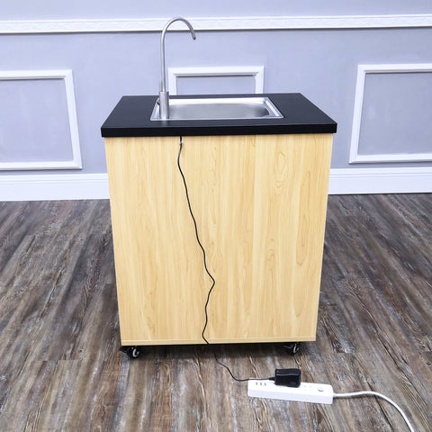 * This Portable Sink Self Contained Hand Wash Station Mobile Sink Water Fountain w/Pump, is great for pre-schools, day cares, laboratories, clinics, hospitals, food truck services, festivals, county fairs, shopping malls, supermarkets, barber ships, and other public places to have water available for quickly washing hands, or dispense water for lab work. Cabinet size is 24 Width X 29 Heigth X 18.3 Deep. Faucet is 10.5 tall. Waterline is 1/4 6mm. Single line.
