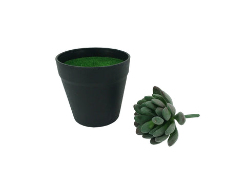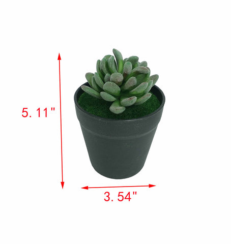 Overall size: 3.5 X 3.5 X 5.1 black plastic planter with artificial high fidelity succulent green gem plant and moss turf. Simply adorable and last forever. Lifetime guarantee! Never ever need water. Clean once in a while to show your love and care. Place this pot on your desk, by your computer, or on your kitchen window. Instantly bring nature and greenery to your surroundings. Also great to place at events receptiion tables such as graduation, wedding, banquets etc.