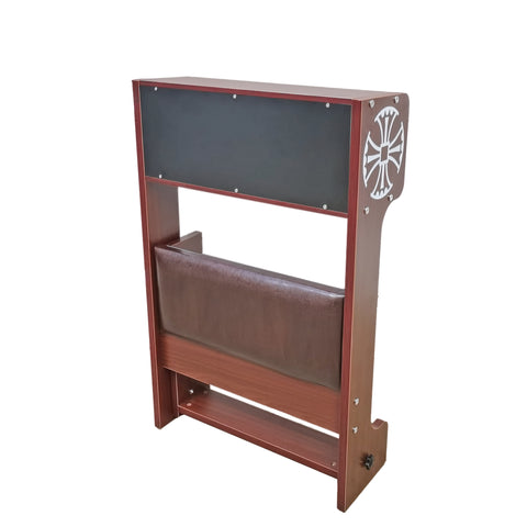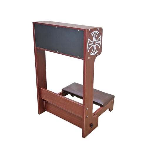 ¡¾Made from MDF with Mahogany Melamine Finish¡¿Crafted from MDF with a mahogany melamine finish, this piece features silk-screened crosses adorning the sides for a touch of elegance. The foldable knee pad is designed for convenience, allowing for easy storage and space-saving functionality