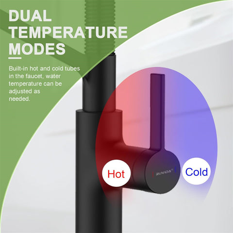 【Contemporary Style Faucet】This kitchen sink faucet features a luxurious matte black finish, offering a sleek, modern aesthetic suitable for both residential and commercial spaces. Crafted from durable zinc alloy and 304 stainless steel spring, the faucet's main body ensures long-lasting performance. The high-quality ceramic valve core prevents water leakage, providing reliable functionality and peace of mind for you and your family