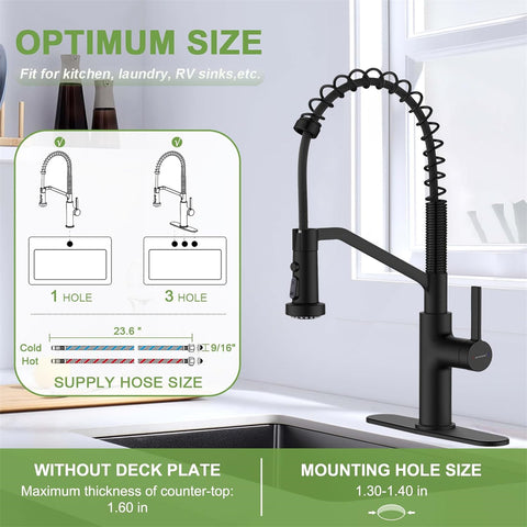 【Easy Installation】This single-hole spring kitchen sink faucet includes a deck plate and all necessary mounting hardware, making it compatible with both single-hole and three-hole basins. DIY installation is straightforward and can be completed in 25 to 30 minutes without the need for a plumber, allowing you to save both time and money while enjoying the satisfaction of a self-installed upgrade
