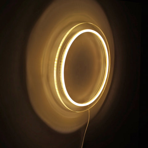 【12-Inch Round Sign Light with LED Logo Panel】This 12-inch Diameter Round Sign Light with LED Logo Panel is an innovative and stylish lighting solution, perfect for adding a modern and personalized touch to various settings such as bars, cafes, retail stores, offices, home decor, and window displays. It also makes an excellent gift for friends. The shipping box measures 12.6 inches in width, 12.6 inches in depth, and 2.2 inches in height, with a gross weight of 2.4 pounds