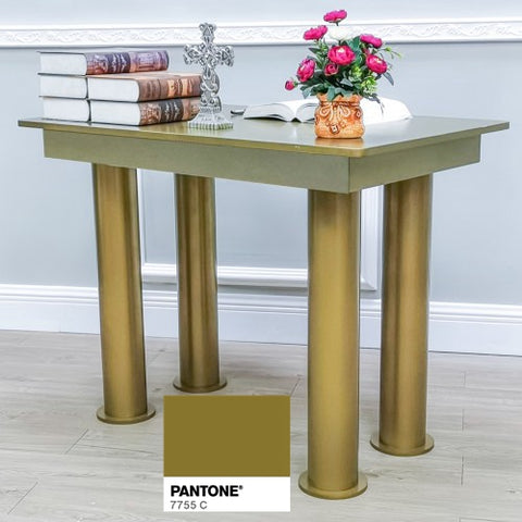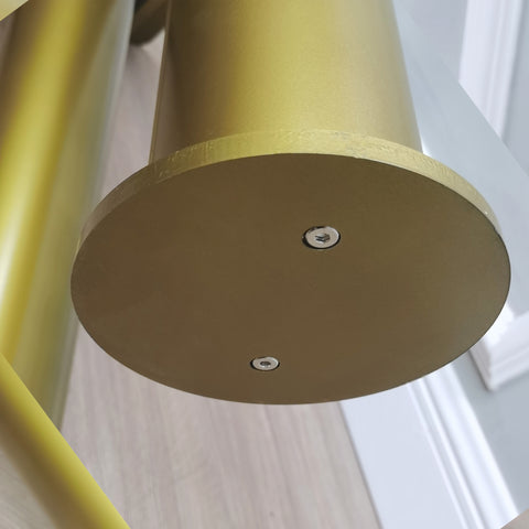 【Wood and plastic constructions】The table top is made of 3/4 inch thick MDF wood, spray painted gold. The table legs are made of strong 4.4 inches diameter plastic tubes