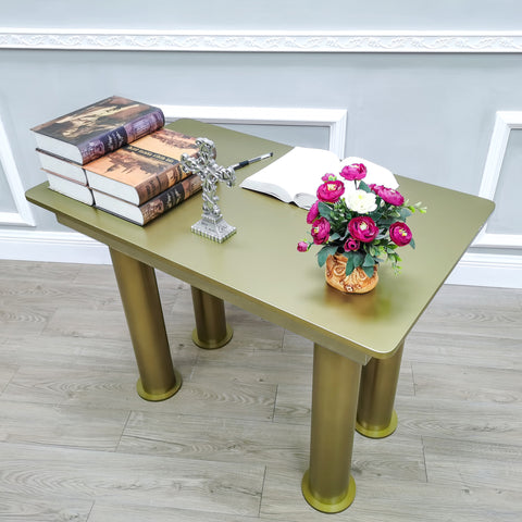 【Gold color consol writing table, 39.3 X 23.6 X 30 inches】The consol table is great for use as a writing desk, or an end table, even a small breakfast table. The shipping box dimensions are 43.1 inches in width, 26.2 inches in depth, and 6.5 inches in height, with a gross weight of 48 pounds
