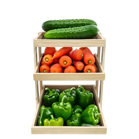 【3-Layer Wood Tray Shelf Ideal for Supermarkets, Grocery Stores, Retail Stores】This 3-layer wood tray shelf is a versatile and attractive display solution designed for retail environments, supermarkets, grocery stores, farmers markets, and more. Crafted from durable wood with a natural finish, it brings a warm and rustic touch to your store while keeping your produce organized and easy to access. The shipping box measures 19.1 inches in width, 16.3 inches in depth, 4.8 inches in height with a gross weight of 9.9 pounds