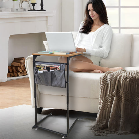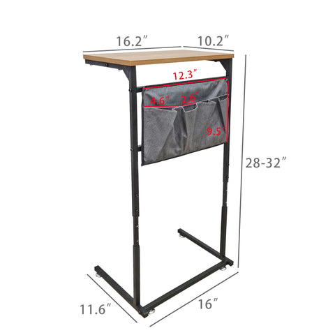 16X11.6X28-32" C Shaped Small Sofa Side Table w/ Storage Bag & Metal Frame 10191