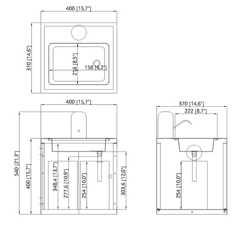 【Overall Size 15.8 X 14.6 X 21.3"】The overall dimensions are 15.8 inches wide, 14.6 inches deep, and 21.3 inches tall. The metal cabinet measures 15.8 inches wide, 14.6 inches deep, and 14.6 inches tall, while the sink is 12.5 inches wide, 8.6 inches deep, and 2.7 inches tall