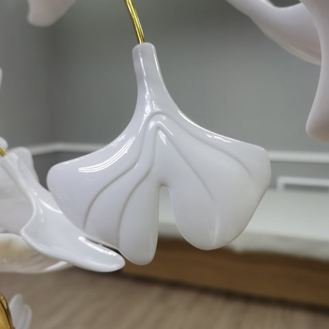 【Premium Materials】Crafted with an iron body and paired with matte porcelain lampshades, each branch is adorned with delicate white flower-shaped lights. These lights are connected by slender metal wires, creating a sophisticated and intricate structure. The soft and warm light provides a cozy and romantic ambiance when illuminated at night