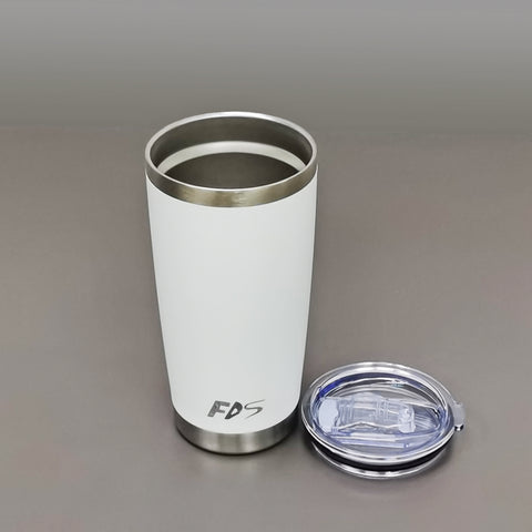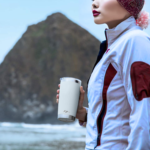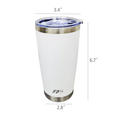 【18 Oz Tumbler】This 20-ounce white vacuum insulated cup comes with a push-on lid that provides maximum splash resistance. It's easy to drink from - just slide the lid open. With a 3.4-inch mouth diameter, it stands at 6.69 inches tall, and has a bottom diameter of 2.79 inches. The surface is sweat-proof for easy gripping and prevents heat transfer to the exterior
