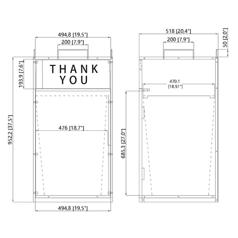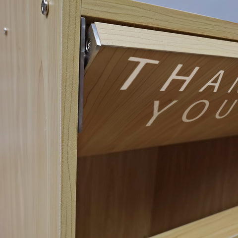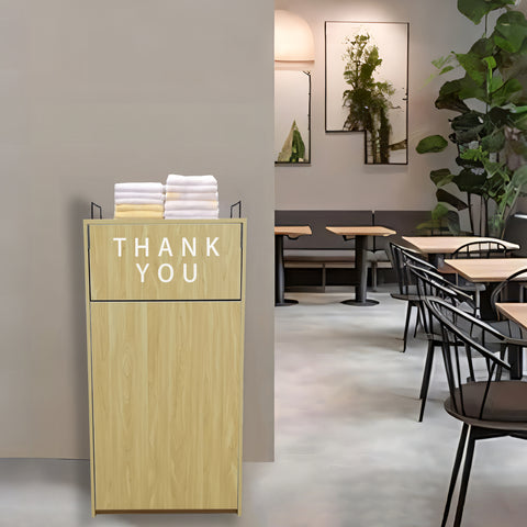 【Durable Structure】This waste basket receptacle is crafted from 0.5-inch thick maple MDF, effortlessly complementing any decor theme. The door panel is printed with "THANK YOU" to provide a more welcoming atmosphere. The top panel features 2-inch high steel wire fences to prevent items from falling off