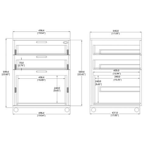 【Overall Size 19.5 X 23.6 X 17.6"】The overall dimensions are 19.5 inches wide, 23.6 inches tall, and 17.6 inches deep. It features 3 glide drawers: the top two drawers each measure 19.5 inches wide, 4.9 inches tall, and 16.5 inches deep, while the bottom drawer measures 19.5 inches wide, 12.2 inches tall, and 16.5 inches deep