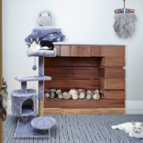 【Sisal Covered Scratching Posts】The scratching posts of the cat tree are covered with sisal, a natural fiber that is perfect for cats to scratch on and keep their claws healthy. The sisal material is durable and resistant to scratching, ensuring that your cats have a satisfying and long-lasting scratching surface