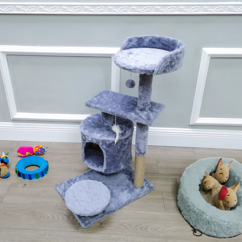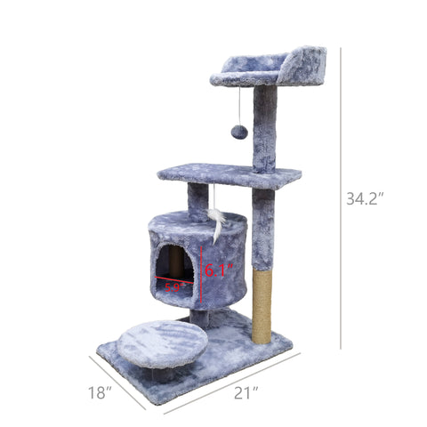 21X18X34.2" Cat Tree Condo Furniture Sisal-Covered Scratching Posts Plush Condo Grey 15735