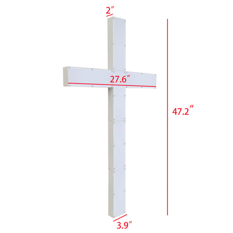 【27.6X47.2X2" Made up with 6 Identical Modules】The overall dimensions are 27.6 inches in width, 47.2 inches in height and 2 inches in depth. The LED lighted cross is featured with 6 light box compartments, each one measures 11.8 inches in width, 3.9 inches in depth and 2 inches in height. The 6 boxes canbe secured with screws and connected with male/female plugs