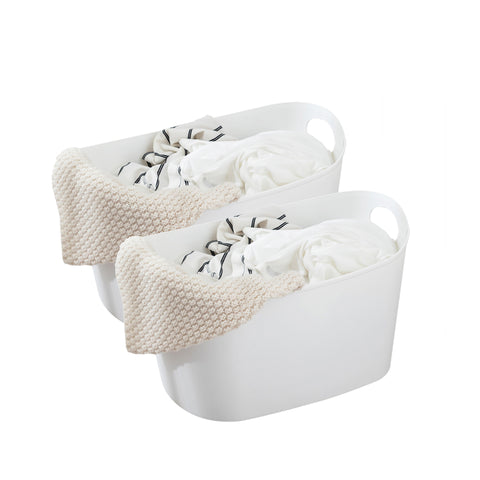 2PK 30L Laundry Basket w/ Handles White Plastic Multi-functional Storage Basket 22013-2PK