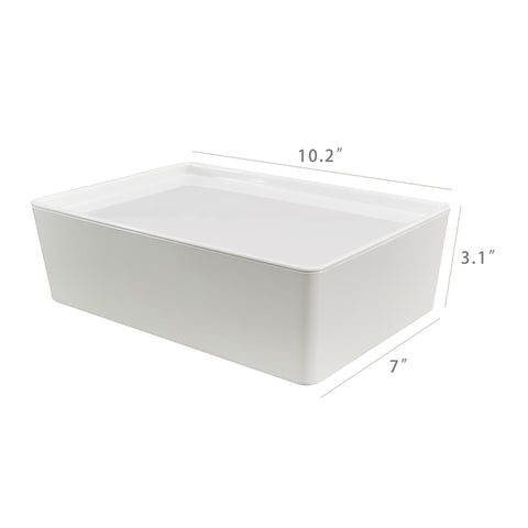 【2PK White Plastic Storage Box with Lid】This bright white box pairs perfectly with its lid, allowing multiple boxes to be stacked vertically, maximizing space and providing an ideal storage solution. The lid ensures dust protection and prevents items from being compressed when stacked, keeping your belongings clean and organized. With convenient handles, this plastic storage box is portable and easy to pull out even from shelves, making it simple to move your items with ease.