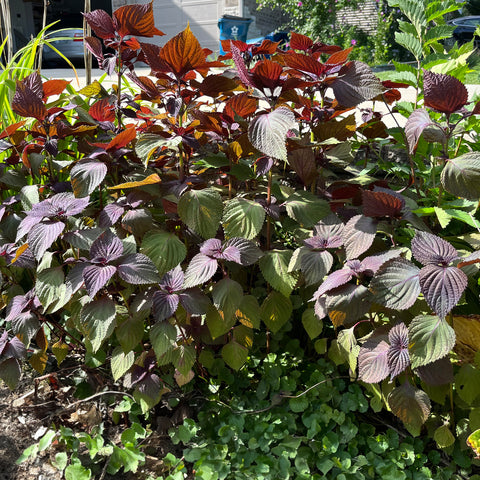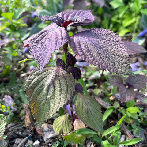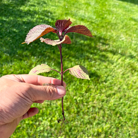 【3 Small Plants】3 Purple Perilla live plants. Perilla is annual. But grows back by itself through fallen seeds. Typically no re-planting is needed. Multiply quickly yet easy to eradicate in over grown areas