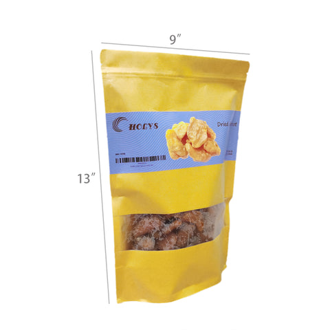 【32oz Dried Apricots】 Packaged in a sealed kraft paper bag, the dimensions are 9 X 13 X 2.4 inches. Inside, there is a small packet of desiccant (remove before consumption) to keep the apricots dry. Each bag of apricots weighs 32 ounces (2 pounds)