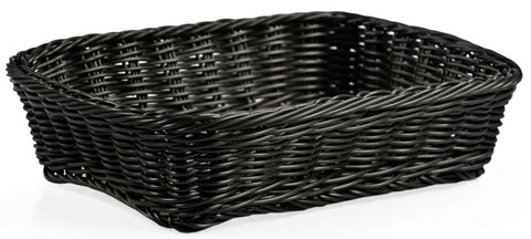 The food serving woven basket, also known as a bread wicker holder, is lightweight for easy transportation. Each restaurant display is small enough to carry multiple bins at a time. This food serving woven basket that has a small footprint is made for fitting multiple holders on a shelf at a time. The plastic display has a footprint of 9 3/4??w x 6 1/4??d. Each food serving woven basket is ideal to be used in a high traffic areas. This polypropylene bread holder can be used in both residential and commercial settings. The food serving woven basket that can be stacked conserves stores valuable space when storing holders. Buy these displays today!