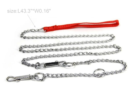 Each chain link is welded and polished, strong and nice; Handle is made of nylon material. Come with chain collar!