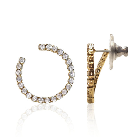 Gold Plated and Made with Super Sparkly Cubic Zirconia Stones * Unique & Flexible * Designed for the Open End to be worn under the Ear Lobe for a Seamless Look* Surgical Steel Posts & Disc Backs